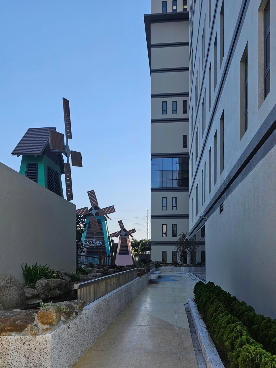 Bên cạnh đó, các hạng mục tường vữa đất mang đến một lớp hoàn thiện giàu tính tự nhiên, góp phần cân bằng không gian y tế vốn thường mang cảm giác khô cứng. Sự kết hợp giữa vật liệu truyền thống và giải pháp thi công hiện đại giúp công trình vừa đạt tiêu chuẩn kỹ thuật cao, vừa tạo cảm giác thân thiện, gần gũi cho người sử dụng.